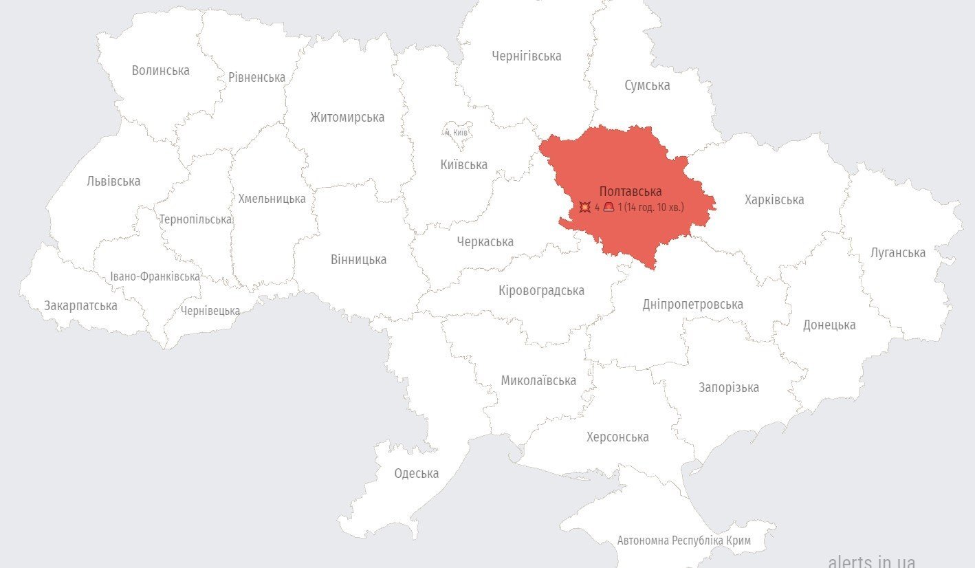 Сьогодні, 26 серпня, під час чергової масованої ракетної атаки армії РФ по території України повітряна тривога у Кременчуці тривала 14 годин і 10 хвилин. Такі дані наводить портал alerts.in.ua.