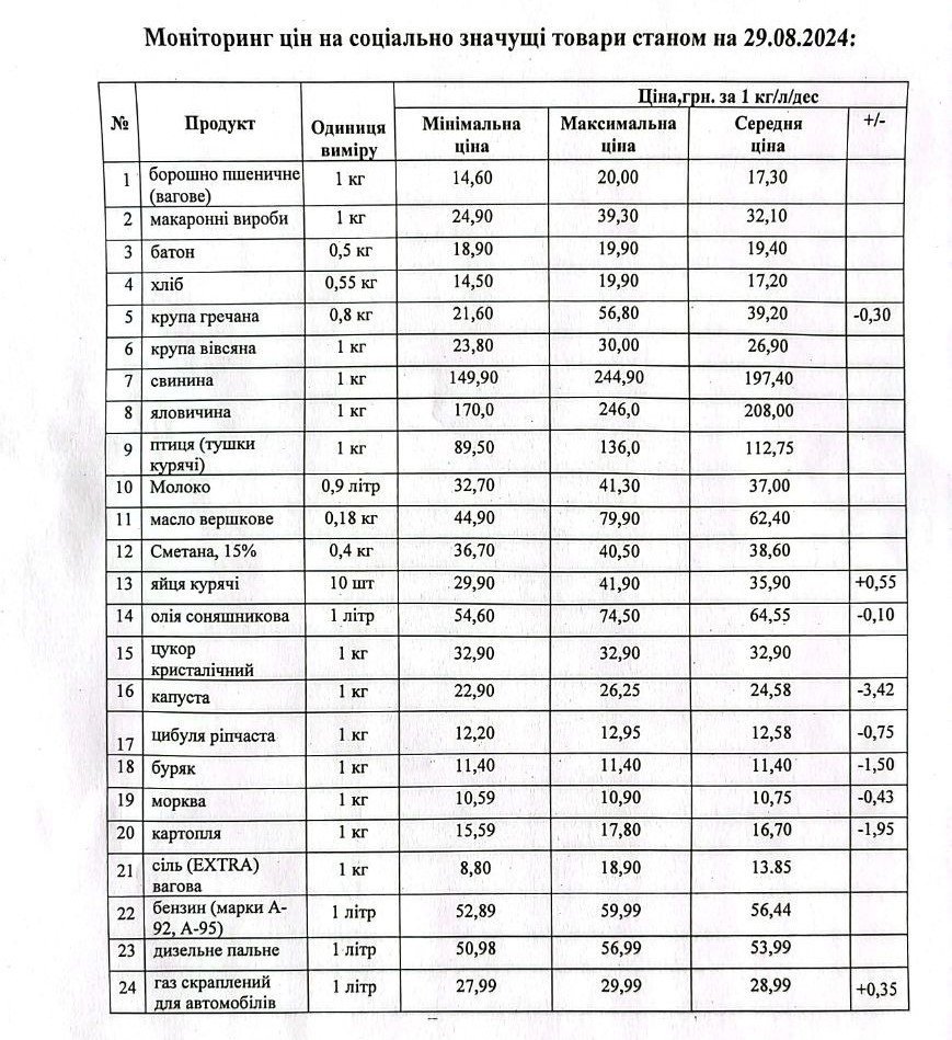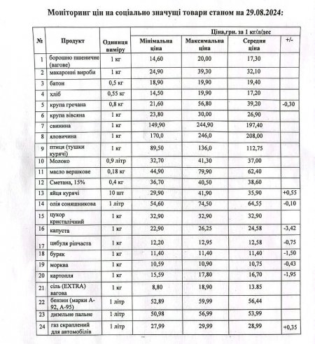 Кременчуцьке районне управління Держпродспоживслужби провело моніторинг цін на соціально значущі товари у торговельних закладах району станом на 29 серпня. З цією інформацією наше видання ознайомила Кременчуцька районна військова адміністрація.
