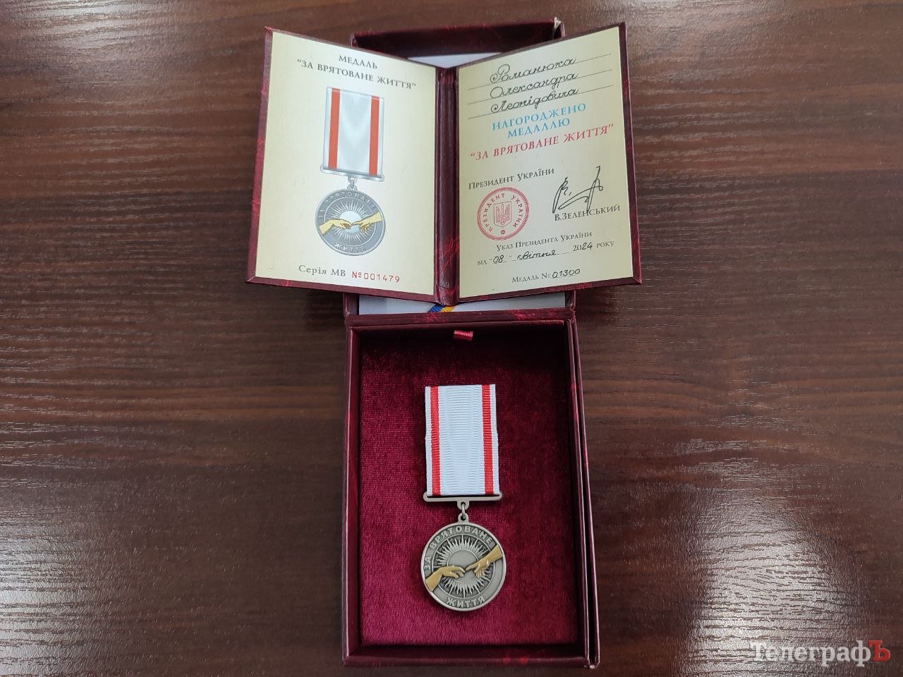 Сьогодні, 30 серпня, військовому медику з Кременчука Олександру Романюку вручили відзнаку Президента України — медаль «За врятоване життя». Бойову відзнаку вручали виконувач обов’язки начальника Кременчуцької РВА Артем Даценко та начальник Кременчуцького районного територіального центра комплектування та соціального захисту (ТЦК та СП) полковник Мирослав Волков.