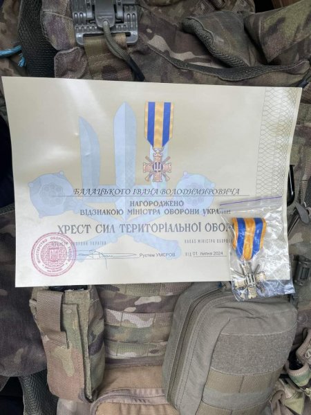 Боєць 116-ї окремої бригади Сил територіальної оборони ЗСУ кременчужанин Іван Балацький отримав відзнаку міністра оборони України «Хрест сил територіальної оборони».