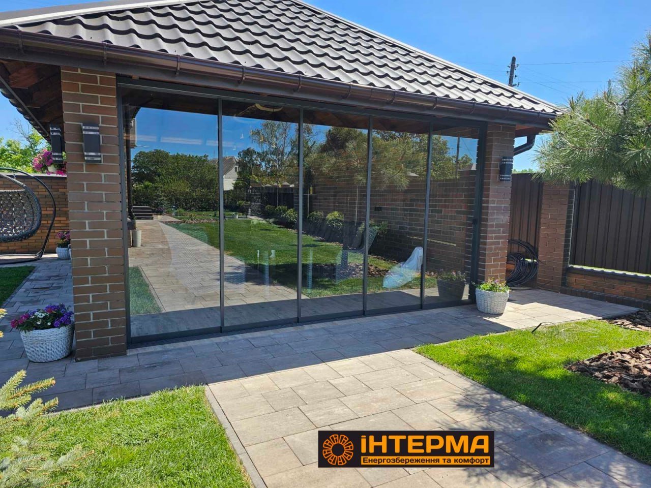 Завдяки безрамному склінню Ваші альтанки, тераси, веранди, балкони, майданчики ресторанів та кафе будуть захищені від будь-яких погодних умов, пилу та бруду.