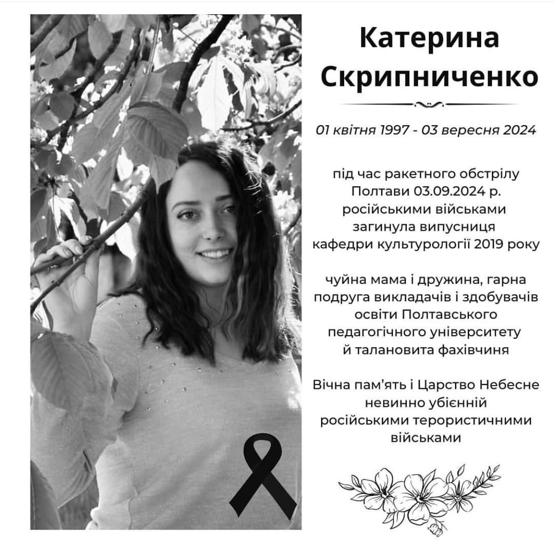Редакція «Кременчуцького Телеграфа» висловлює щирі співчуття рідним та близьким Катерини.