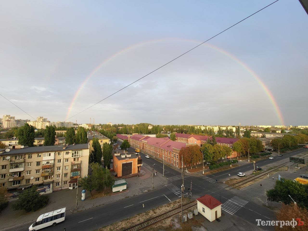 9 вересня, близько 18.30, у небі над Кременчуком з’явилася веселка. Містяни діляться світлинами у соцмережах.