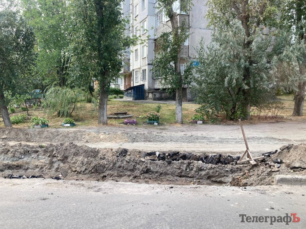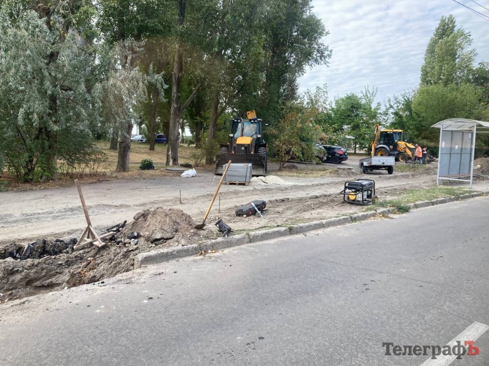 17 вересня на вулиці Героїв Маріуполя, неподалік зупинки громадського транспорту «вул. Миру», триває ремонт пішохідної частини дороги. На місці робіт, окрім підрядника, також були й працівники комунального підприємства «Кременчуцьке підрядне спеціалізоване шляхове ремонтно-будівельне управління».