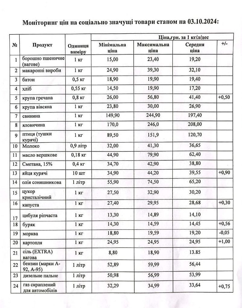 Кременчуцьке районне управління Держпродспоживслужби провело моніторинг цін на соціально значущі товари у торгівельних закладах району станом на 3 жовтня. З цією інформацією наше видання ознайомила Кременчуцька районна військова адміністрація.