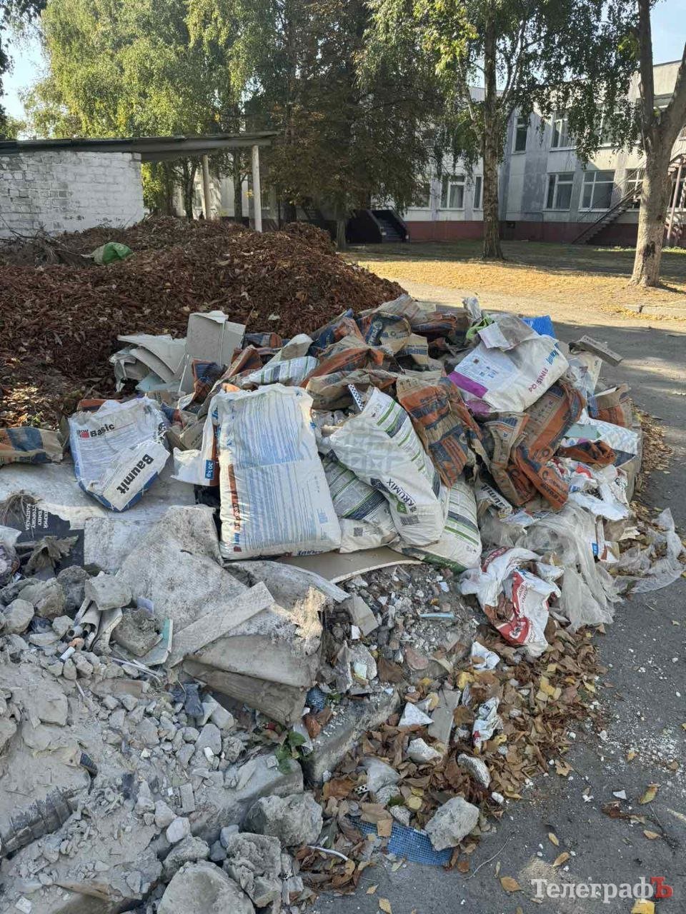 Крім цього, за словами завідувачки, біля будівельного сміття є також і купа листя, яке збирається з усієї території садка в одному місці.