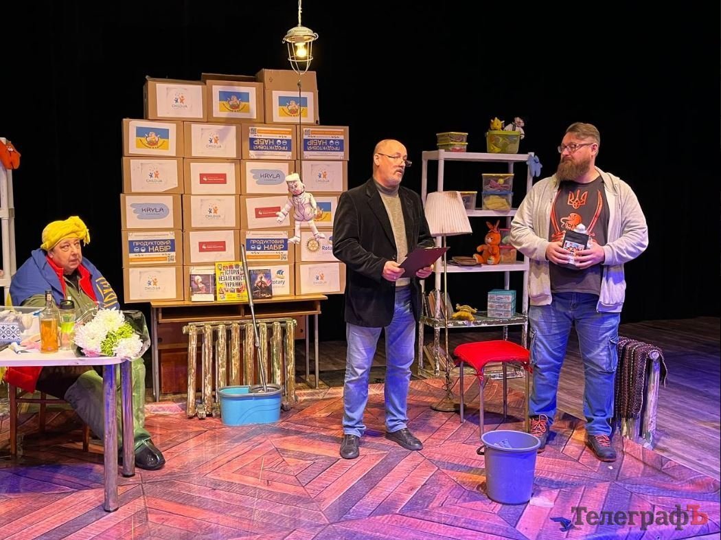 По завершенню постанови на сцену вийшов директор МПК Сергій Ситник. Він повідомив, що співпрацівники німецького театру Лінденхоф вирішили підтримати херсонців та перерахували на рахунок херсонського театру 2000 євро.