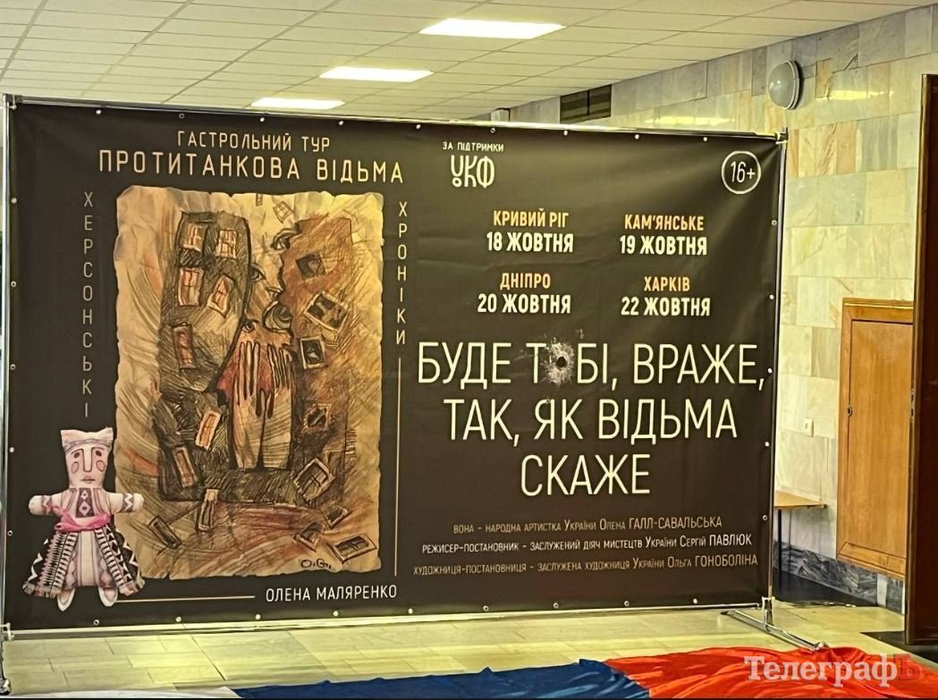 Кременчуцьким шанувальникам показали моновиставу про херсонську окупацію «Буде тобі, враже, так, як відьма скаже» за п?єсою херсонської письменниці Олени Маляренко «Протитанкова відьма».