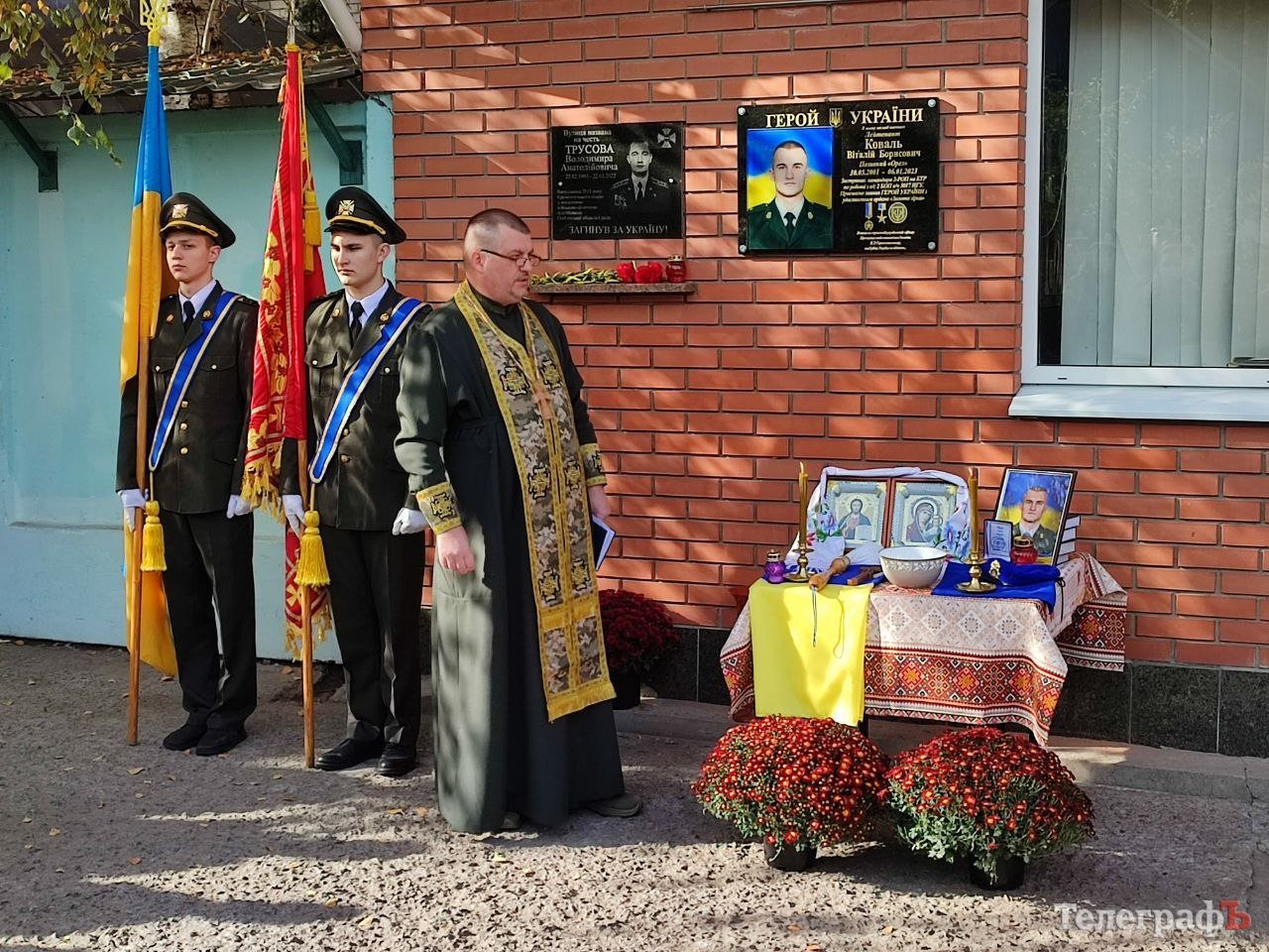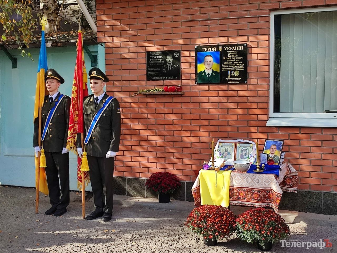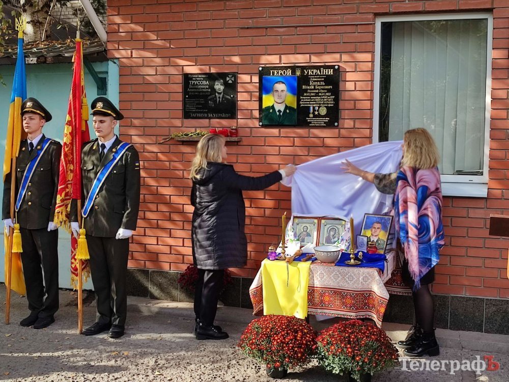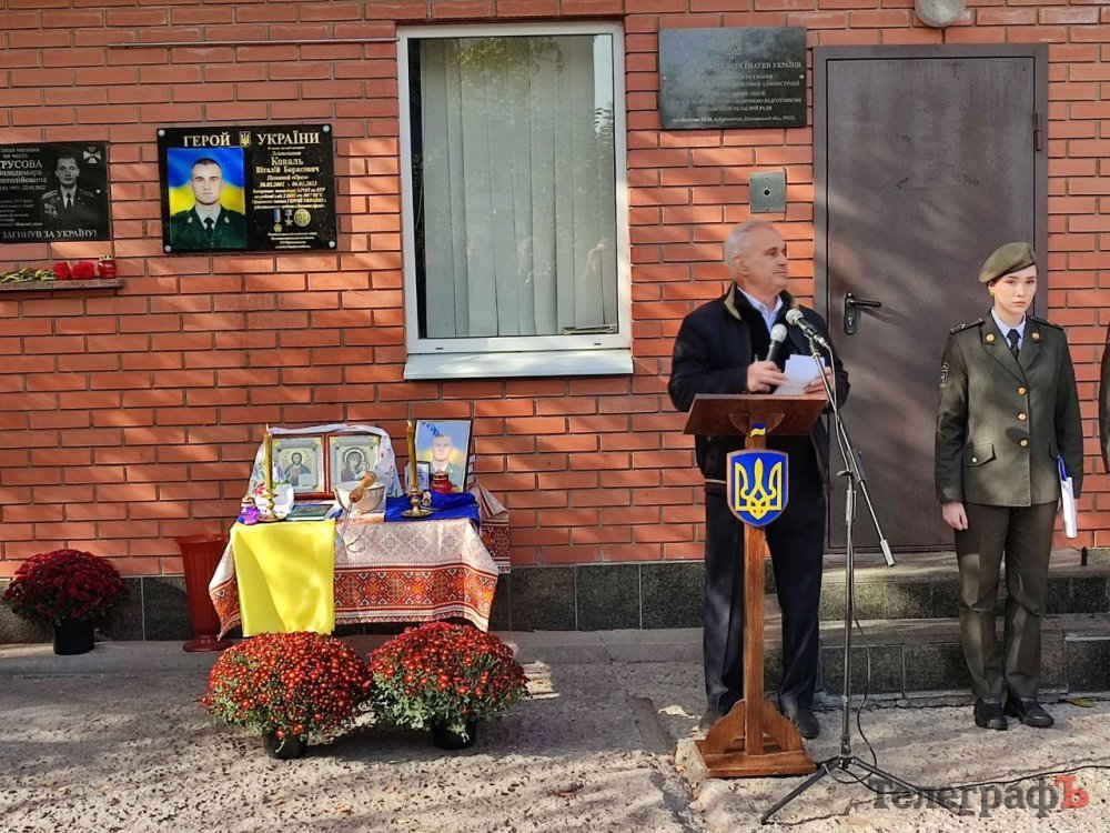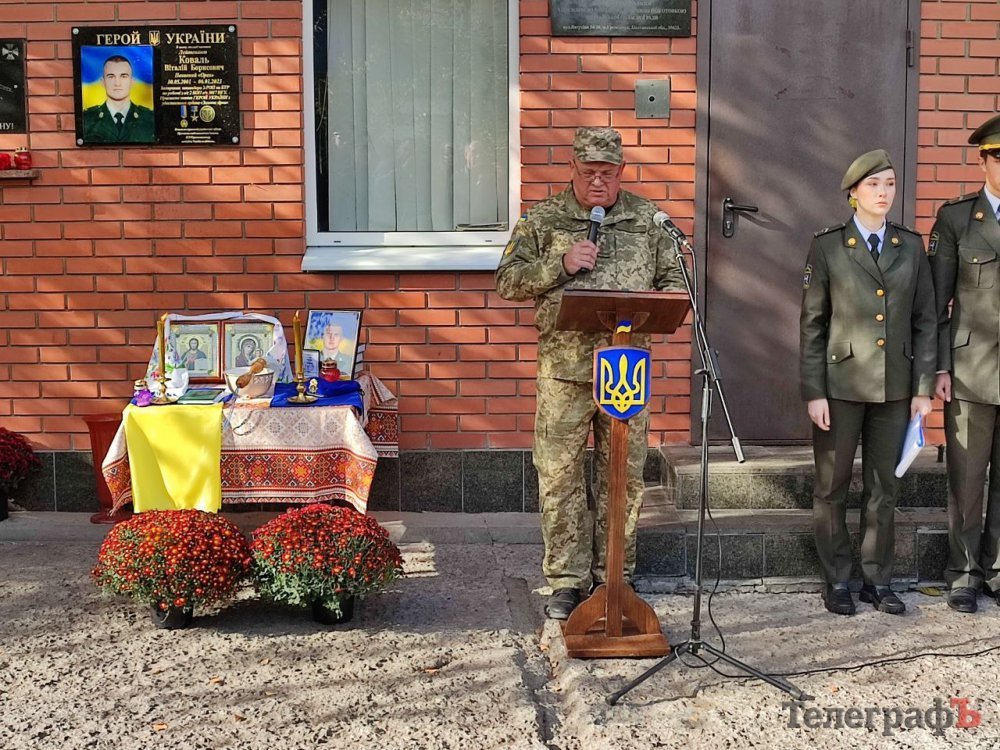 Сьогодні, 30 жовтня, на КПП біля входу до Кременчуцького ліцею з посиленою військово-фізичною підготовкою урочисто відкрили меморіальну дошку, присвячену Герою України, випускнику цього навчального закладу 2018 року, лейтенанту Нацгвардії Віталію Ковалю.