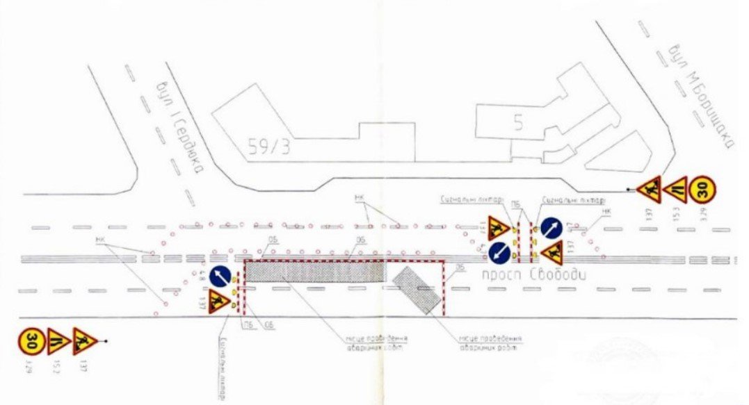 Рух обмежать на ділянці від перехрестя з вулицею Ігоря Сердюка до будинку №5 на проспекту Свободи.