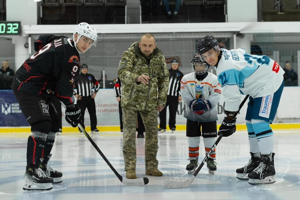 Урочисте вкидання шайби на початку матчу виконали учасник бойових дій, підполковник Валерій Сапоненко, нагороджений відзнакою Президента України орденом Богдана Хмельницького ІІІ ступеня, та юний хокеїст «Кременчука» Марко Аболмасов.