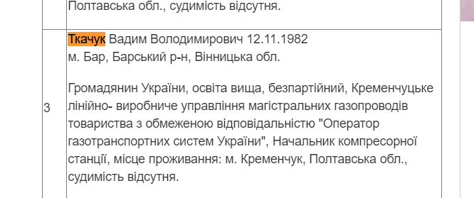 Але побачили згадку про Вадима Володимировича Ткачука у наших минулих публікаціях: він балотувався як депутат від Партій Слуга народу у 2020 році.