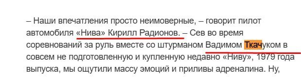 2. Також ми знайшли згадку про Вадима Ткачука як про штурмана у команді майстра бездоріжжя Кирила Радіонова у 2011 році.