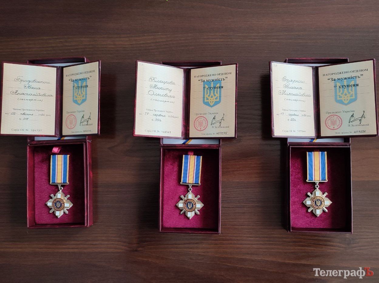 Сьогодні, 7 листопада, в Кременчуцькій районній військовій адміністрації вручили державні нагороди родинам трьох загиблих воїнів з Кременчука.