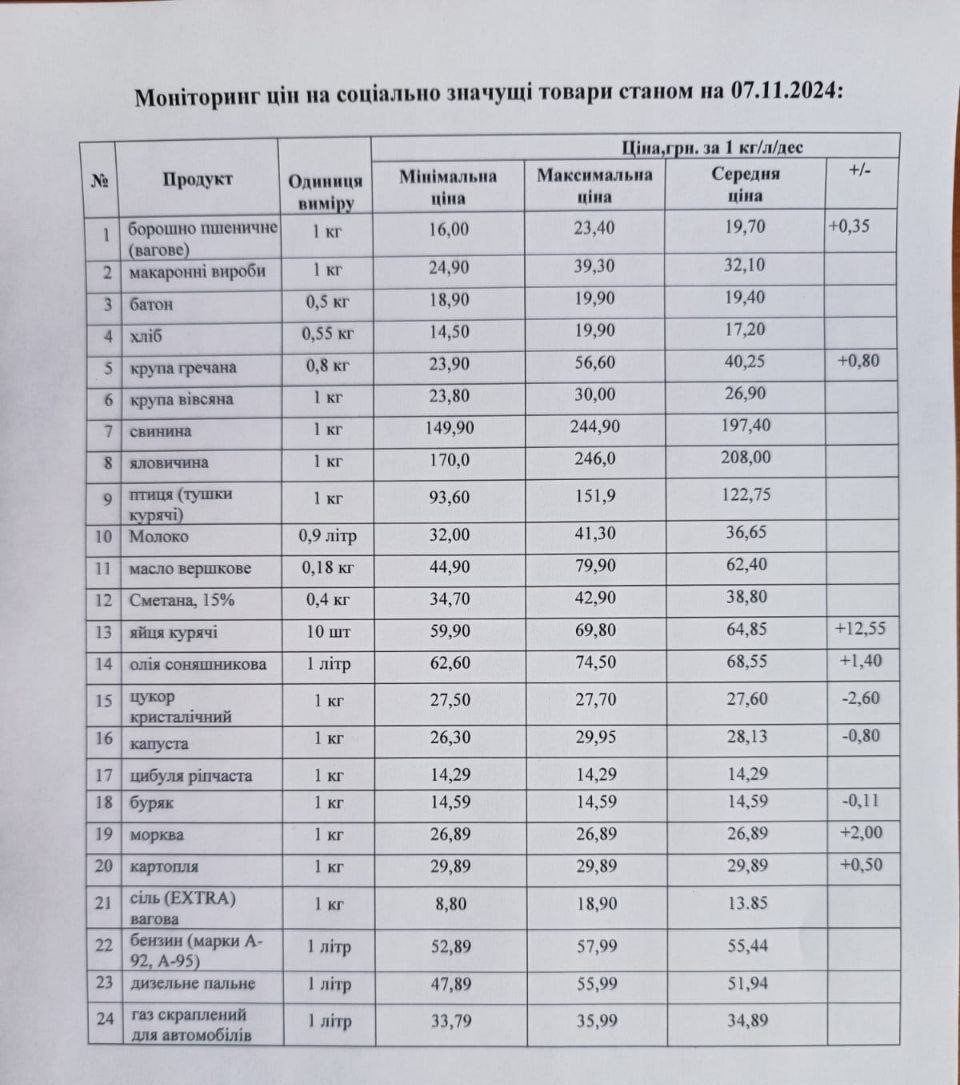 Кременчуцьке районне управління Держпродспоживслужби провело моніторинг цін на соціально значущі товари у торгівельних закладах району станом на 7 листопада. З цією інформацією наше видання ознайомила Кременчуцька районна військова адміністрація.