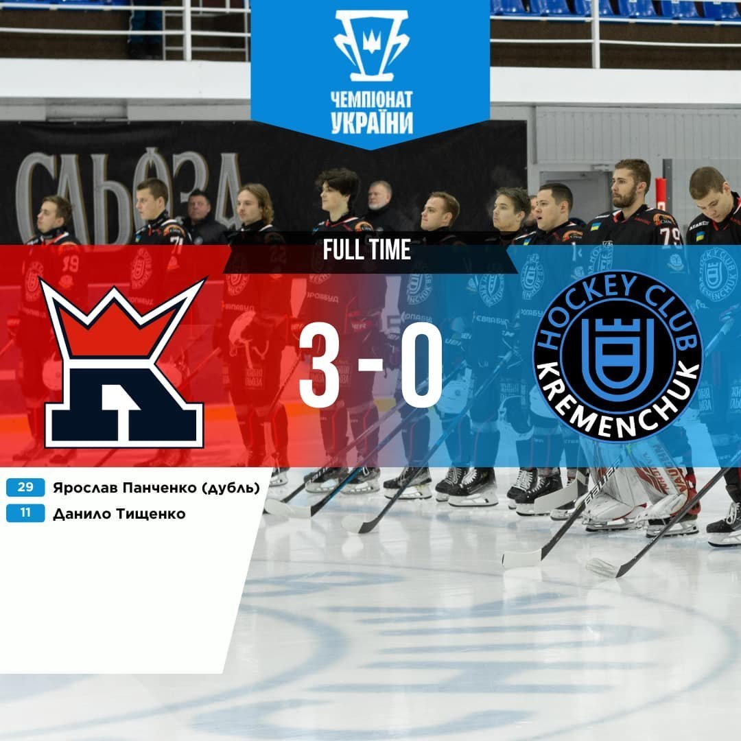 Зійшлися команди на арені у Києві. У трьох важких періодах «Кременчук» пропустив три шайби і поступився суперникам.