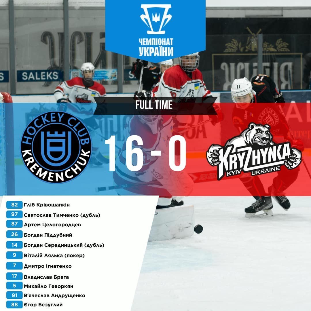 Минула гра у «Кременчука» відбулася значно успішніше: 9 листопада хокеїсти упевнено розгромили київську «Крижинку» із рахунком 16:0.