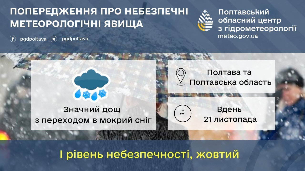 Завтра, 21 листопада, у Кременчуці та на Полтавщині прогнозують сильні пориви вітру та дощ із мокрим снігом. Про це інформують у пресслужбі Полтавського обласного гідрометцентру.