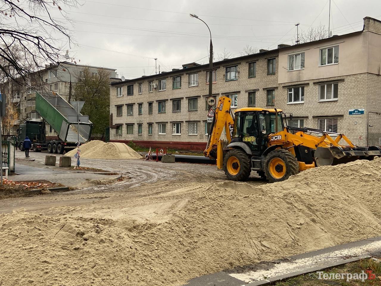 На вулиці Шевченка попри негоду сьогодні зранку тривають роботи по закриттю теплотраси. Фотокореспондент «Кременчуцького Телеграфу» побував на місці виконання робіт.