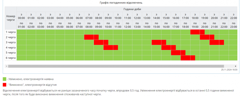 ПАТ «Полтаваобленерго» оприлюднило графік погодинних відключень світла на завтра, 26 листопада.