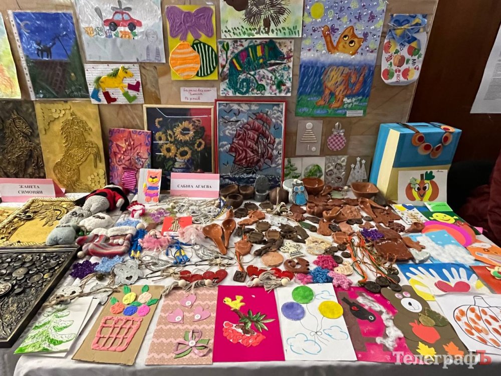 На виставці представлені картини, вироби з бісеру, проволоки, унікальні малюнки, які зробили діти з серйозними проблемами зі здоровʼям.