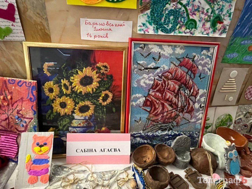На виставці представлені картини, вироби з бісеру, проволоки, унікальні малюнки, які зробили діти з серйозними проблемами зі здоров?ям.