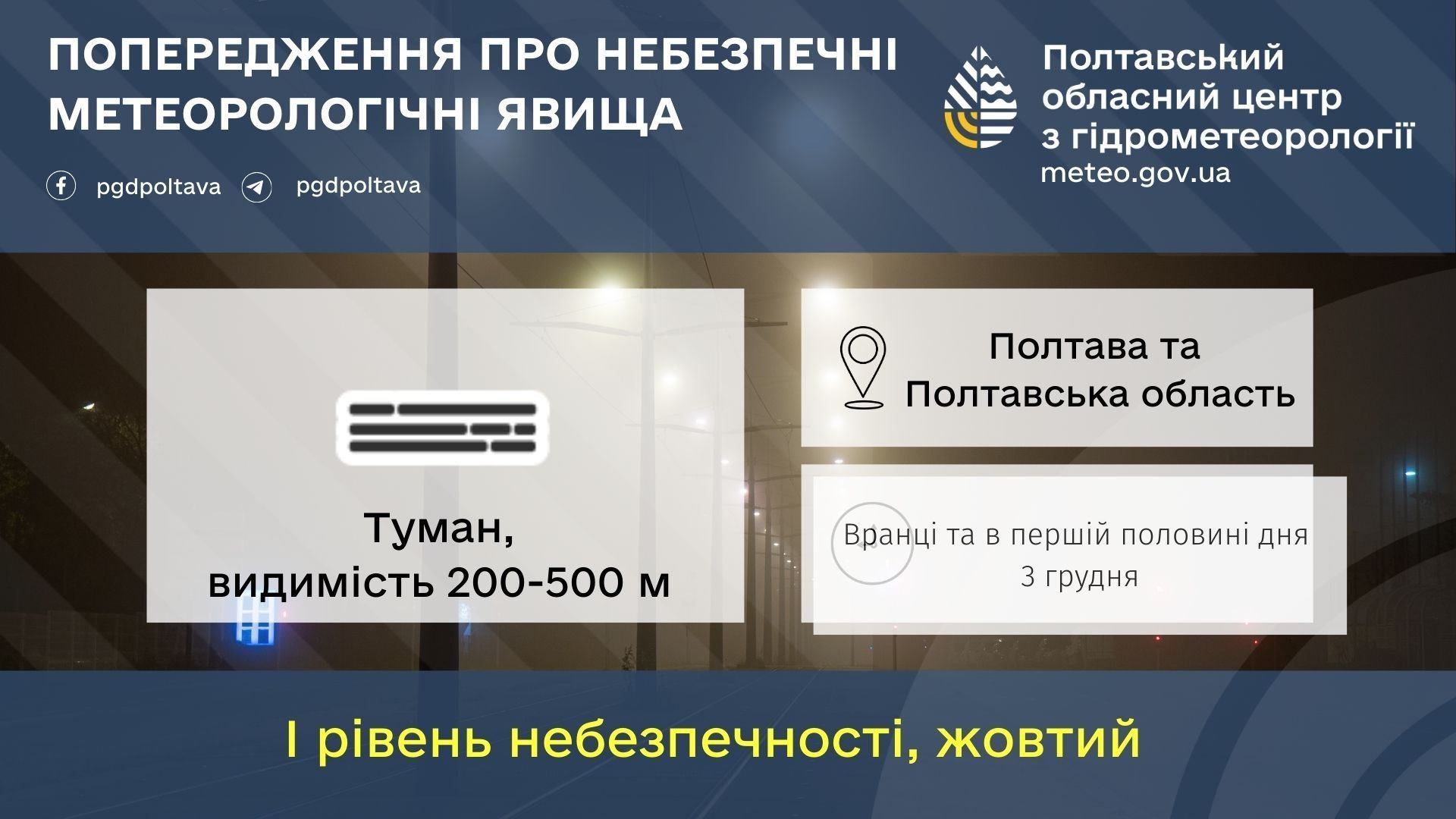 Сьогодні, 3 грудня, у Кременчуці та на Полтавщині у першій половині дня синоптики прогнозують туман та низьку видимість на дорогах. Про це інформують у пресслужбі Полтавського обласного гідрометцентру.