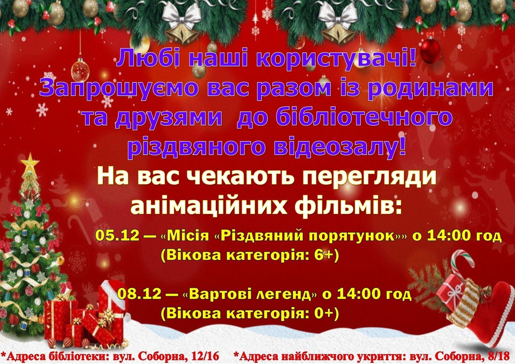 Усіх охочих приєднатися до різдвяного відеозалу запрошують до бібліотеки за адресою вул. Соборна, 12/16.
