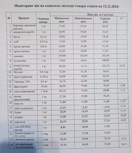 Кременчуцьке районне управління Держпродспоживслужби провело моніторинг цін на соціально значущі товари у торгівельних закладах району станом на 12 грудня. З цією інформацією наше видання ознайомила Кременчуцька районна військова адміністрація.
