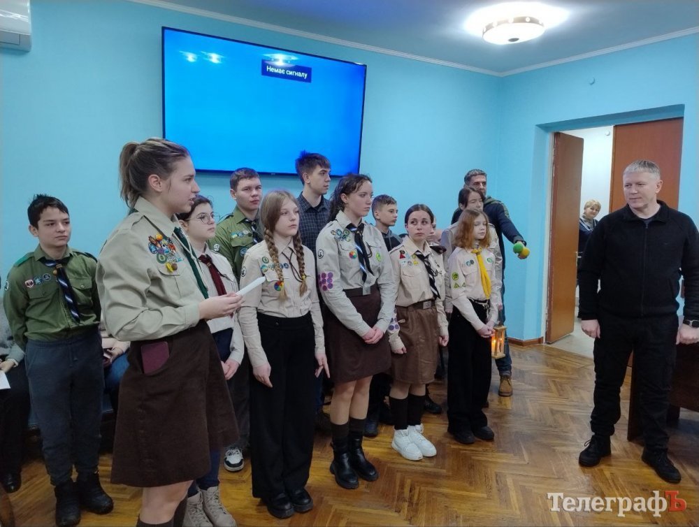 Урочиста передача вогню відбулася у стінах Кременчуцької райвійськадміністрації за участі пластунів Кременчука, очільника КРВА Олександра Аленіна і працівників структури, а також представників військових частин.