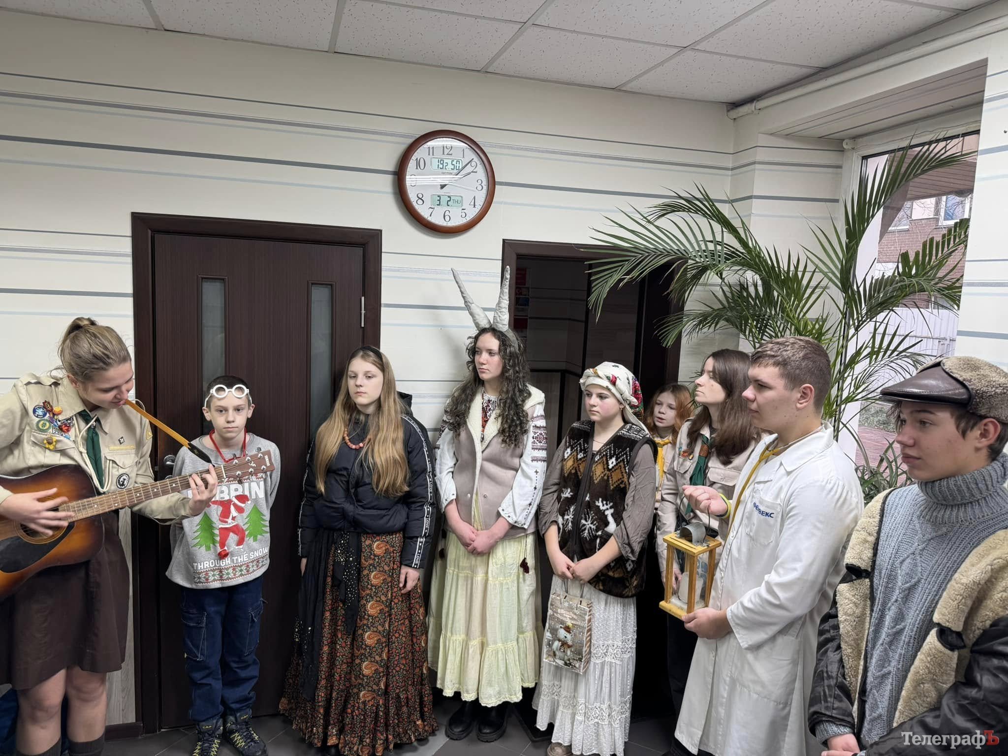 Виступ українських скаутів трохи змінився: спочатку діти зіграли невелику різдвяну виставу й заколядували працівникам. Пластуни організували традиційний український вертеп — із зіркою та козою, циганами й лікарем. За веселу та оригінальну колядку скаути отримали солодкі подарунки.