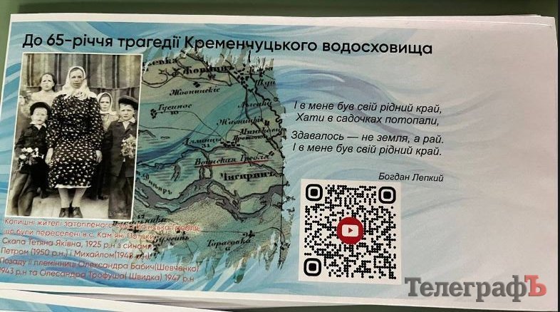 У четвер, 26 грудня, у Кременчуці на головпоштамті міста відбулося урочисте погашення марок на конвертах, присвячених 65-річчю трагедії Кременчуцького водосховища. На заході були присутні діти й онуки тих, кого 65 років тому вимушено переселили з села Воїнці, яке було затоплено через будівництво водосховища.