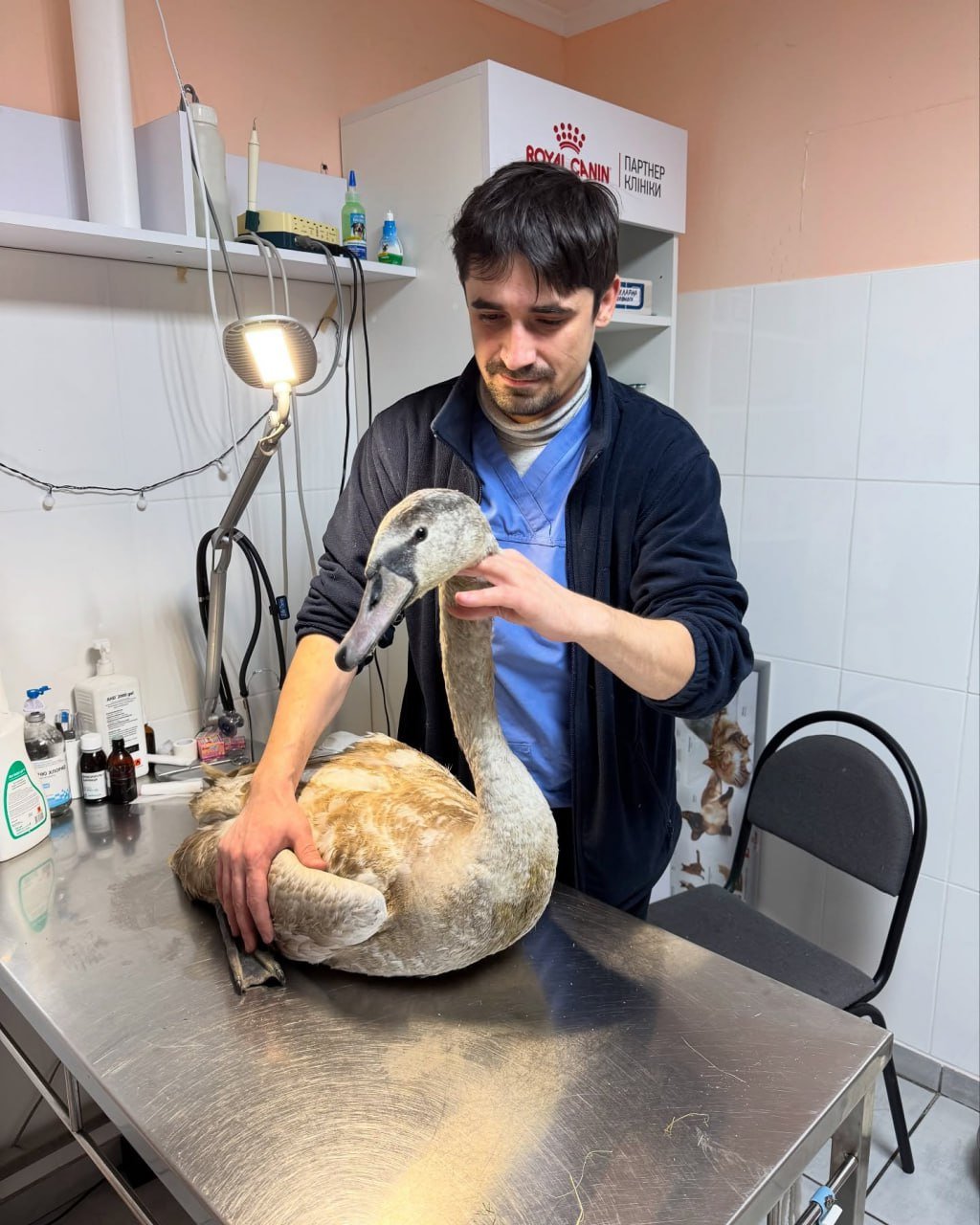 Молодий лебідь, якого врятували від нападу лисиці на Миргородщині, знайшов прихисток у ветеринарній клініці Горішніх Плавнів.