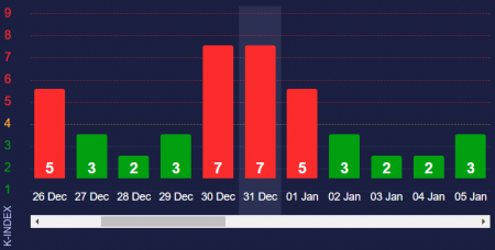 31 грудня К-індекс триматиметься на позначці 7 балів, а завтра знизиться до 5.
