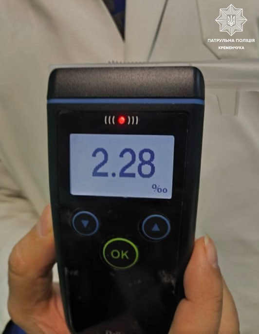 Під час спілкування інспектори помітили у водія ознаки алкогольного сп’яніння. Результат перевірки виявився позитивним — 2.28 проміле, що в понад 11 разів перевищує допустиму норму.