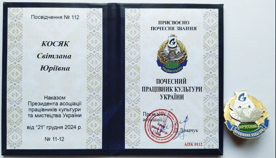 Кременчуцька композиторка, Генеральна директорка Центра міжнародної культурної дипломатії, лауреатка Міжнародної премії «Культурна дипломатія», володарка «Міжнародного ордена Золотої Зірки культурної дипломатії» Світлана Косяк отримала звання Почесний працівник культури України. Про це повідомили в Центрі міжнародної культурної дипломатії.