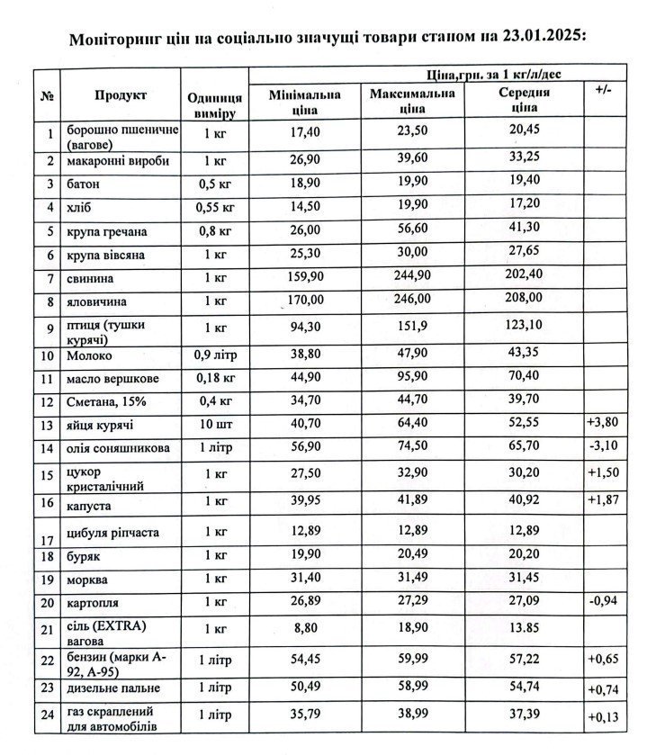 Кременчуцьке районне управління Держпродспоживслужби провело моніторинг цін на соціально значущі товари у торгівельних закладах району станом на 23 січня. З цією інформацією наше видання ознайомила Кременчуцька районна військова адміністрація.