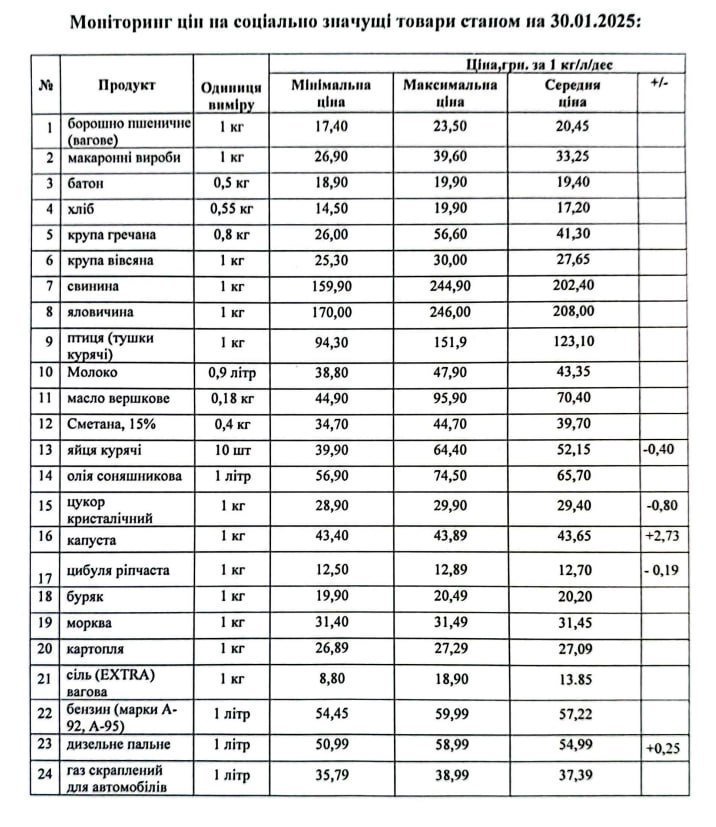 Кременчуцьке районне управління Держпродспоживслужби провело моніторинг цін на соціально значущі товари у торгівельних закладах району станом на 9 січня. З цією інформацією наше видання ознайомила Кременчуцька районна військова адміністрація.