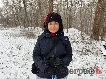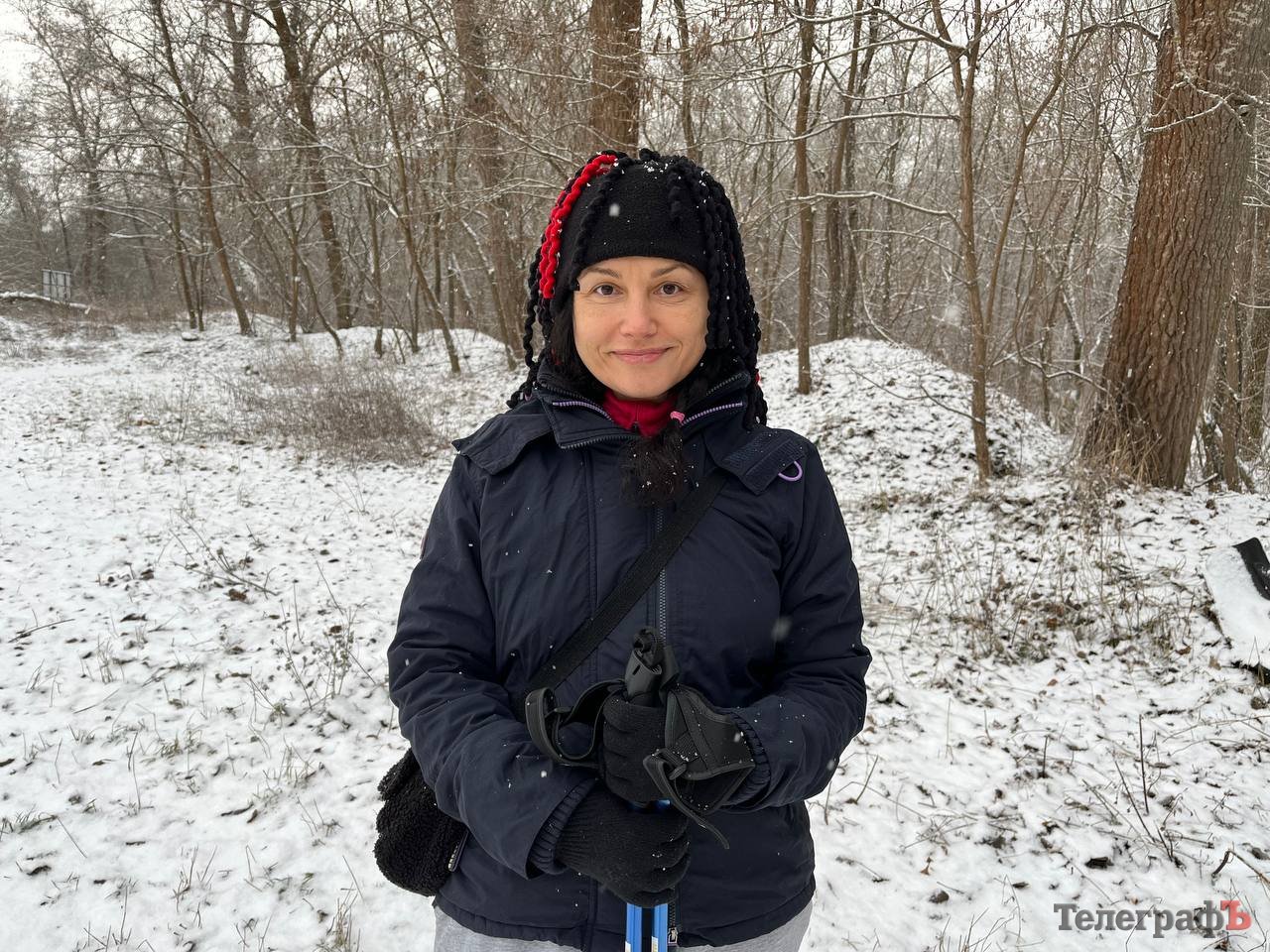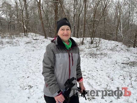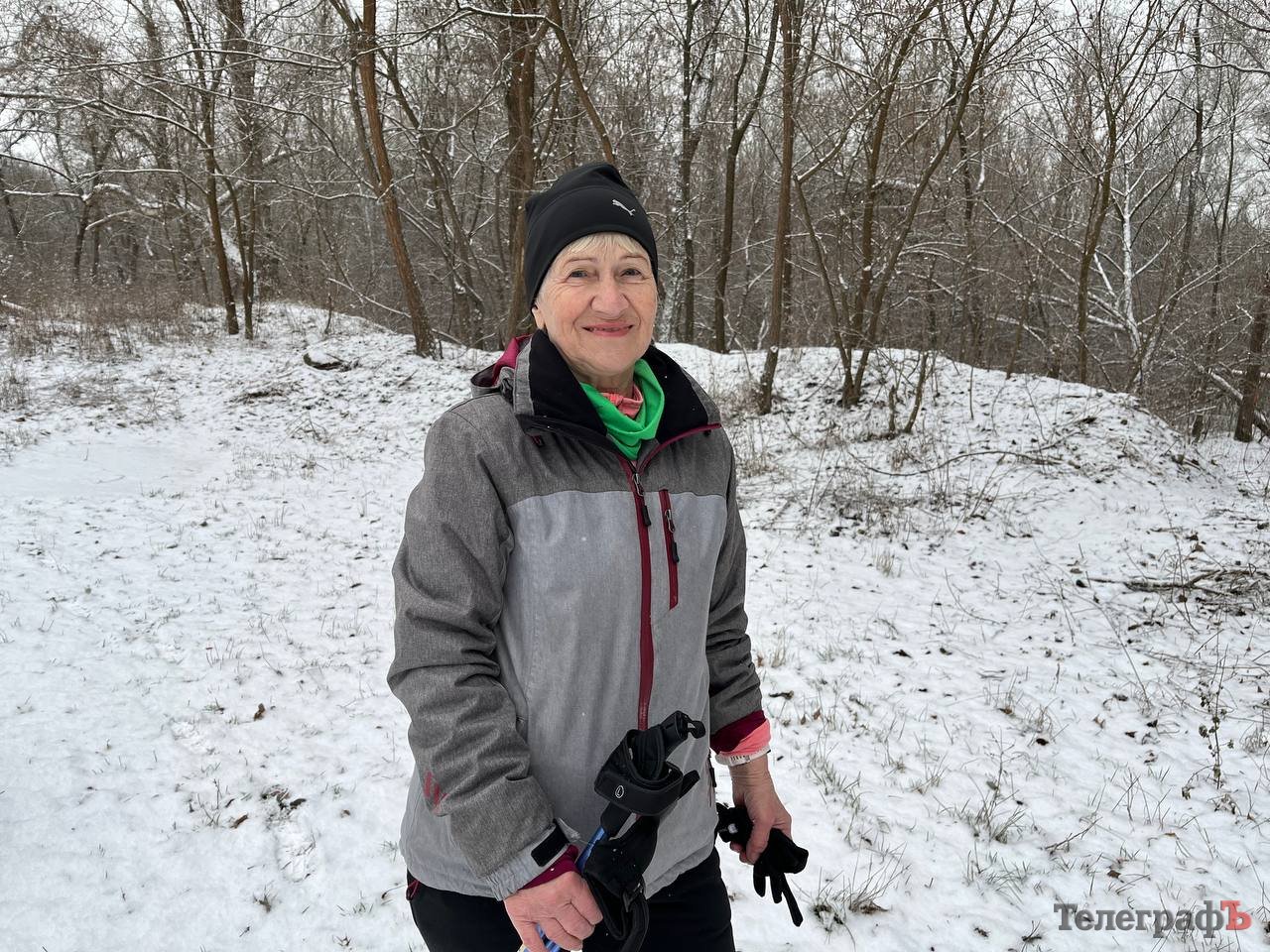 Пані Юлії — 46 років. На скандинавську ходьбу прийшла у вересні минулого року. Каже, цей спорт розвиває все тіло, стопи, руки, ноги.