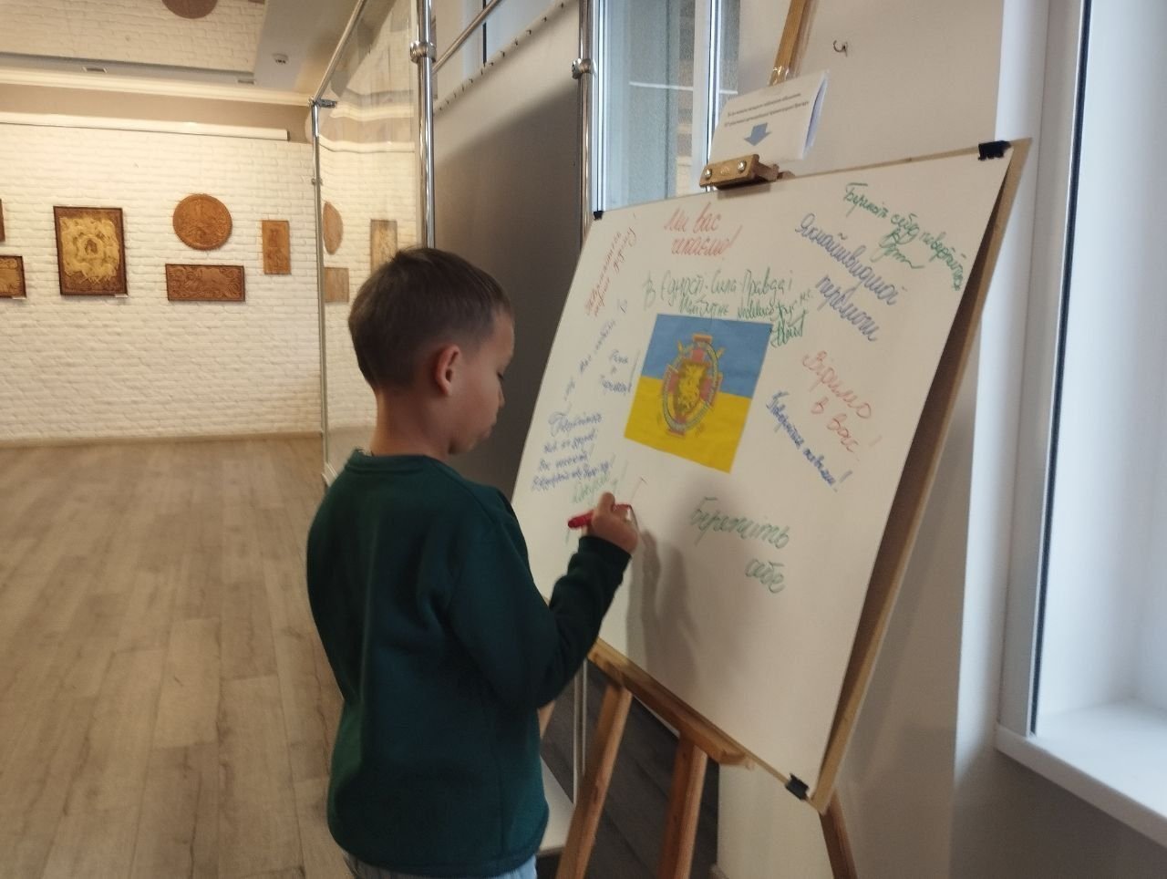 Для цього на виставці встановили стенд з плакатом, де кожен охочий зміг залишити побажання та слова підтримки захисникам.