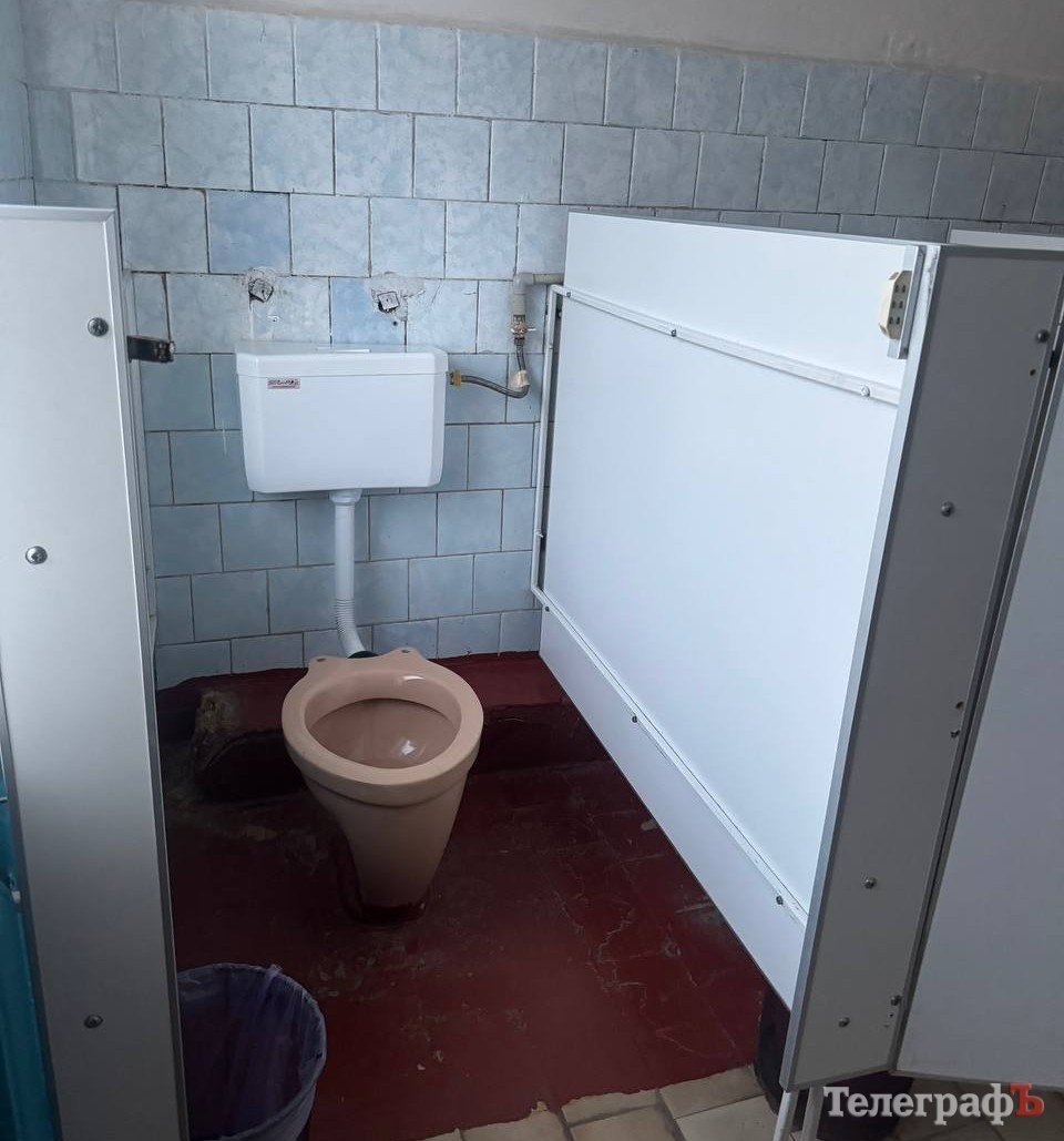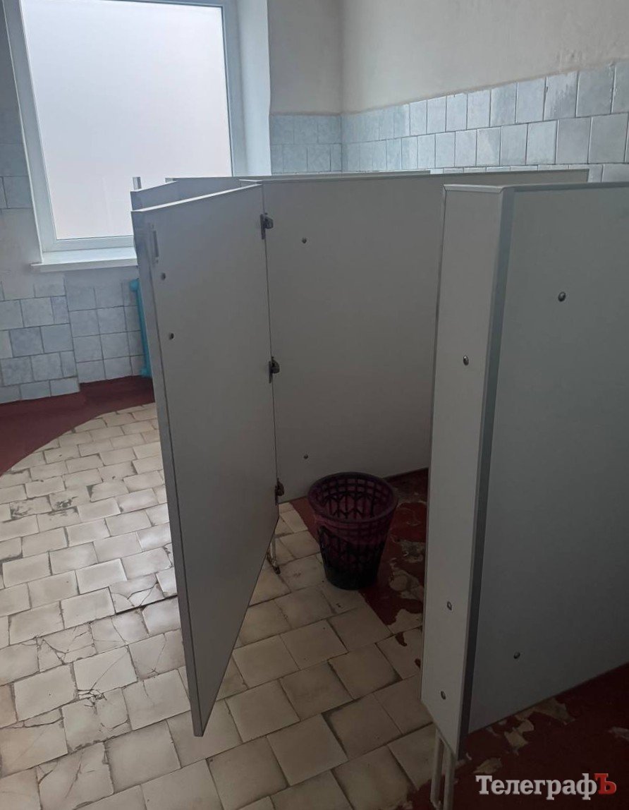 Нещодавно до редакції «Кременчуцького Телеграфа» потрапили фотографії однієї із вбиралень Кременчуцького ліцею №4 «Кремінь». На світлинах видно, що ремонт у вбиральні робили давно, а на одній із кабінок взагалі відсутні дверцята.