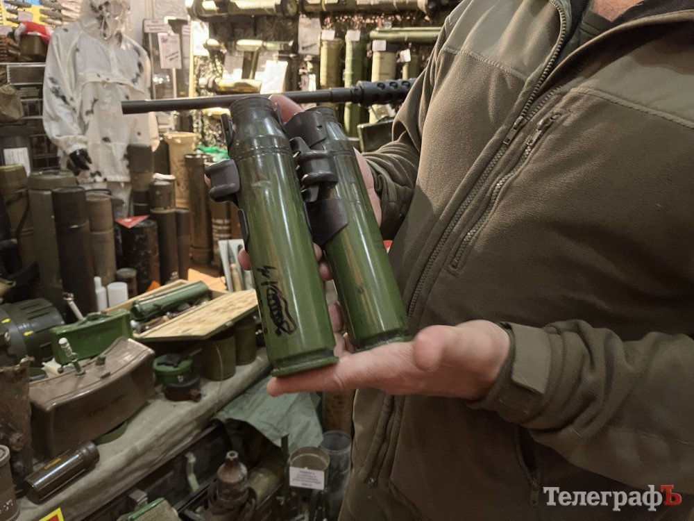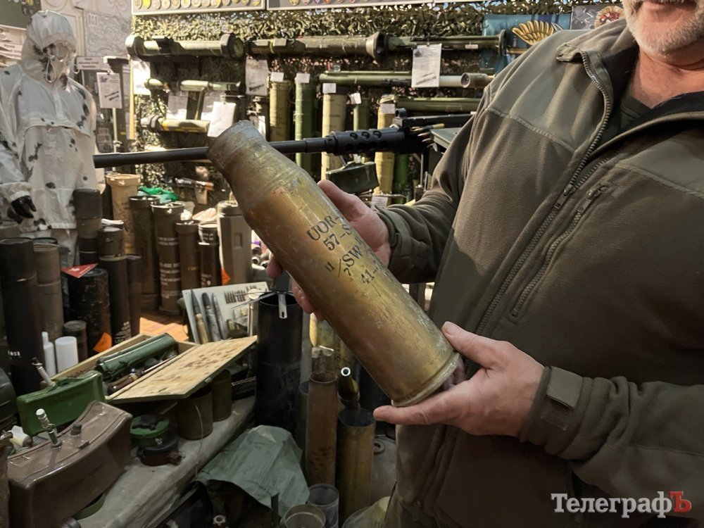 Керівник Музею військової історії Кременчука Володимир Поляков показав снаряди, якими збивають російські безпілотники.