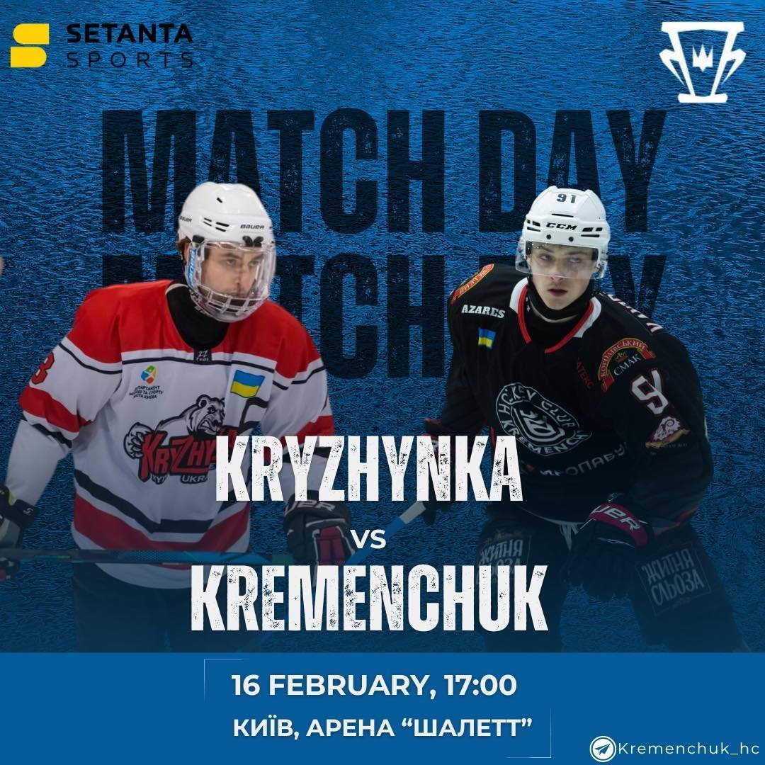 Сьогодні, 16 лютого, о 17.00 відбудеться матч між хокейним клубом «Кременчук» та київської «Крижинкою». Афіша опублікована на сторінці команди.