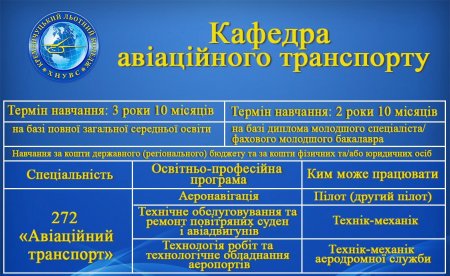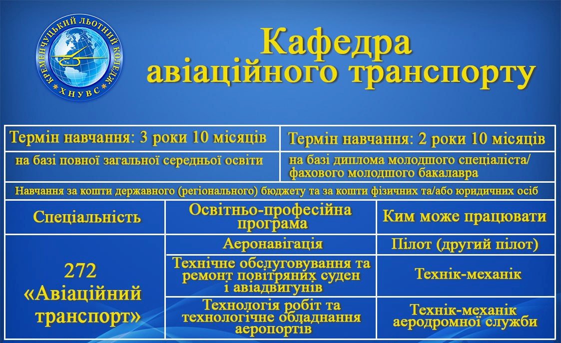 Кременчуцький льотний коледж Харківського національного університету внутрішніх справ запрошує на навчання випускників 11 класів та вступників на базі дипломів фахового молодшого бакалавра, диплому молодшому спеціаліста.