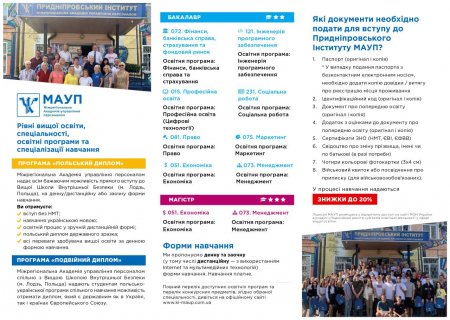 На вас чекають спеціальності економічного, комп’ютерного, технічного та юридичного спрямування. Освітній процес базується на практичному підході, що дозволяє студентам отримувати реальний досвід ще під час навчання. Це допомагає успішно адаптуватися на ринку праці та знаходити високооплачувану роботу. Їх підготовчі курси з української мови та математики — додаткові бали при вступі на безкоштовне навчання та ліквідація освітніх втрат.