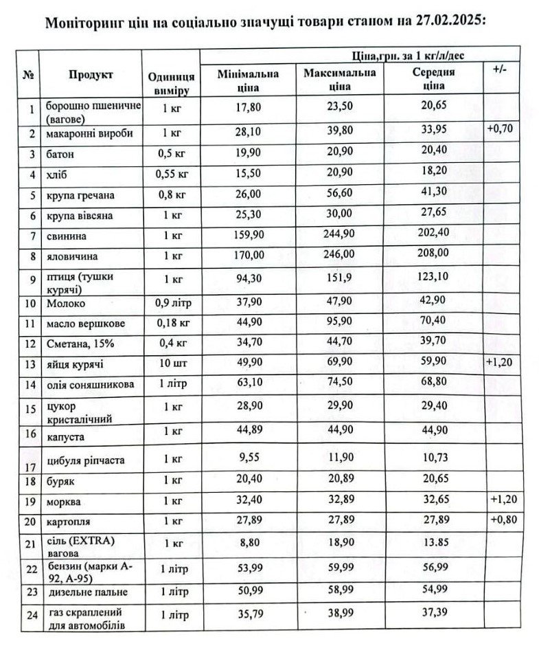 Кременчуцьке районне управління Держпродспоживслужби провело моніторинг цін на соціально значущі товари у торгівельних закладах району станом на 27 лютого. З цією інформацією наше видання ознайомила Кременчуцька районна військова адміністрація.