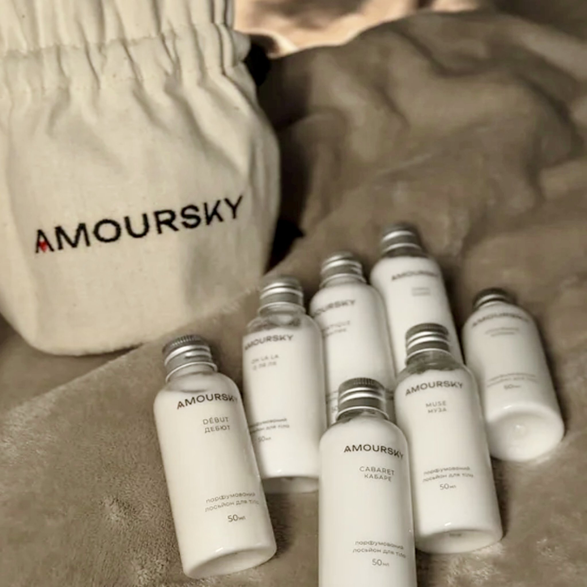 Набір парфумованих зволожуючих лосьйонів Amoursky. Ніжні парфумовані лосьйони, виготовлені в Україні, огортають вас неймовірними ароматами.