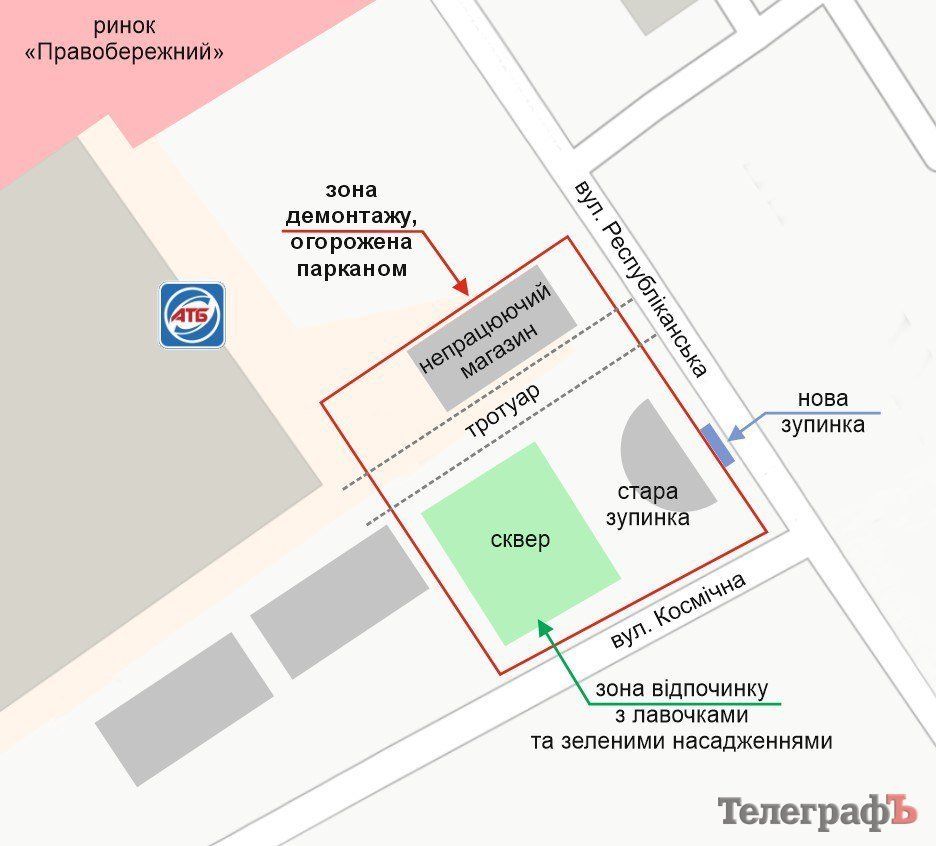 Разом із зупинкою під зону демонтажу потрапив сквер, розташований поруч. Це місце було популярним серед місцевих жителів як зона відпочинку.