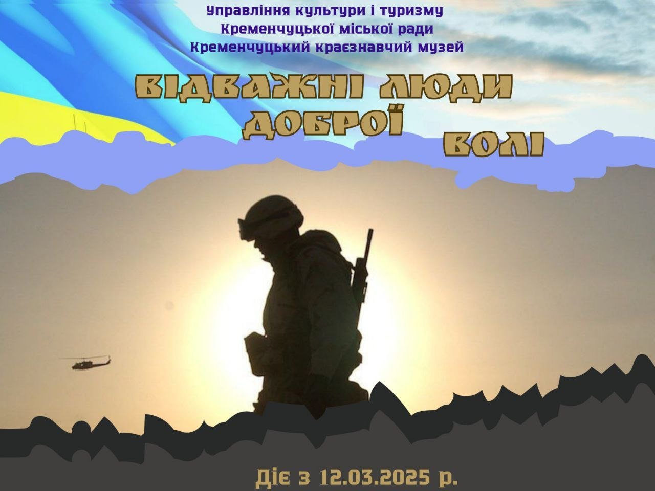 12 березня у Кременчуцькому краєзнавчому музеї відкриють виставку «Відважні люди доброї волі». Її присвятили Дню українського добровольця. Про це повідомили у пресслужбі Кременчуцької міської ради.