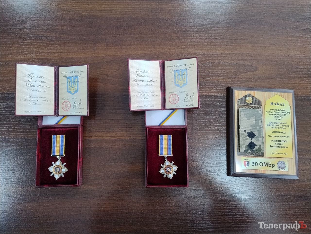 Сьогодні, 13 березня, у стінах Кременчуцької райвійськадміністрації рідні трьох полеглих військовослужбовців отримали їхні посмертні нагороди.